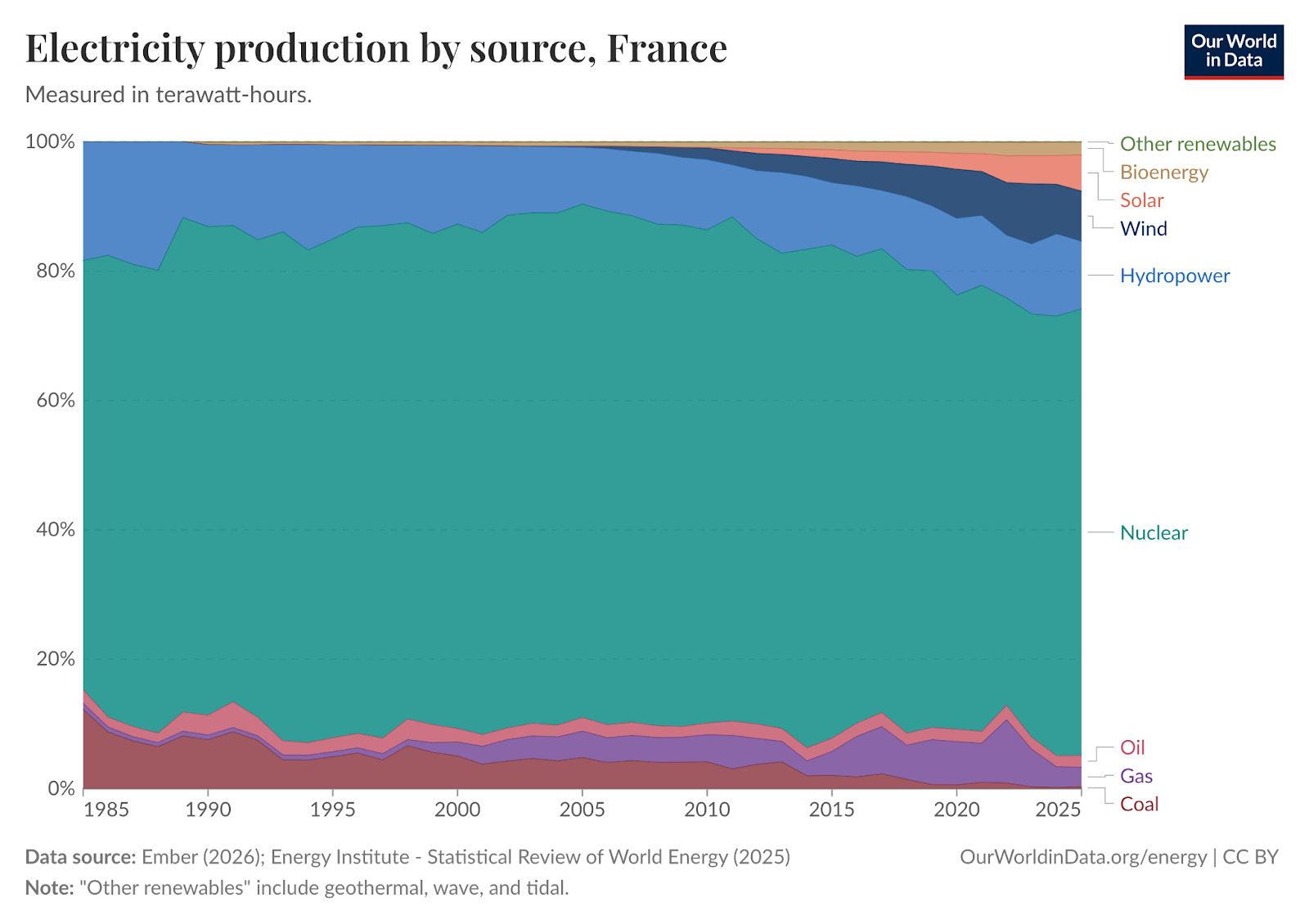 Energy transitions move faster when survival is the motivation. After 1973, France built one of the world’s largest nuclear fleets not to save the planet, but to never depend on someone else’s oil. Today, it has one of Europe’s lowest-carbon grids. The energy transition is reaccelerating, but just not for the reasons we expected.